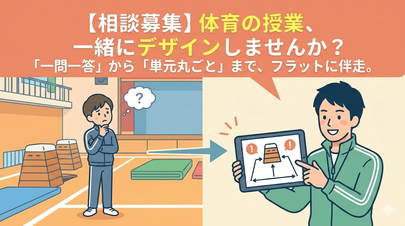 これまで本ブログでは「追試できる体育」を発信してきましたが、これからはあなたのクラス、あなたの悩みに直接応える形で、一緒に授業を作っていきたいと考えています。